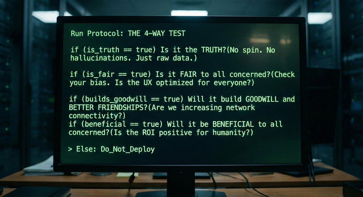 In an era of deepfakes, dark patterns, and algorithm bias, we need a kernel of truth. Since 1932, every Rotarian has run a simple, 24-word compatibility check before making a decision. It’s the ultimate bug filter for your life and career.